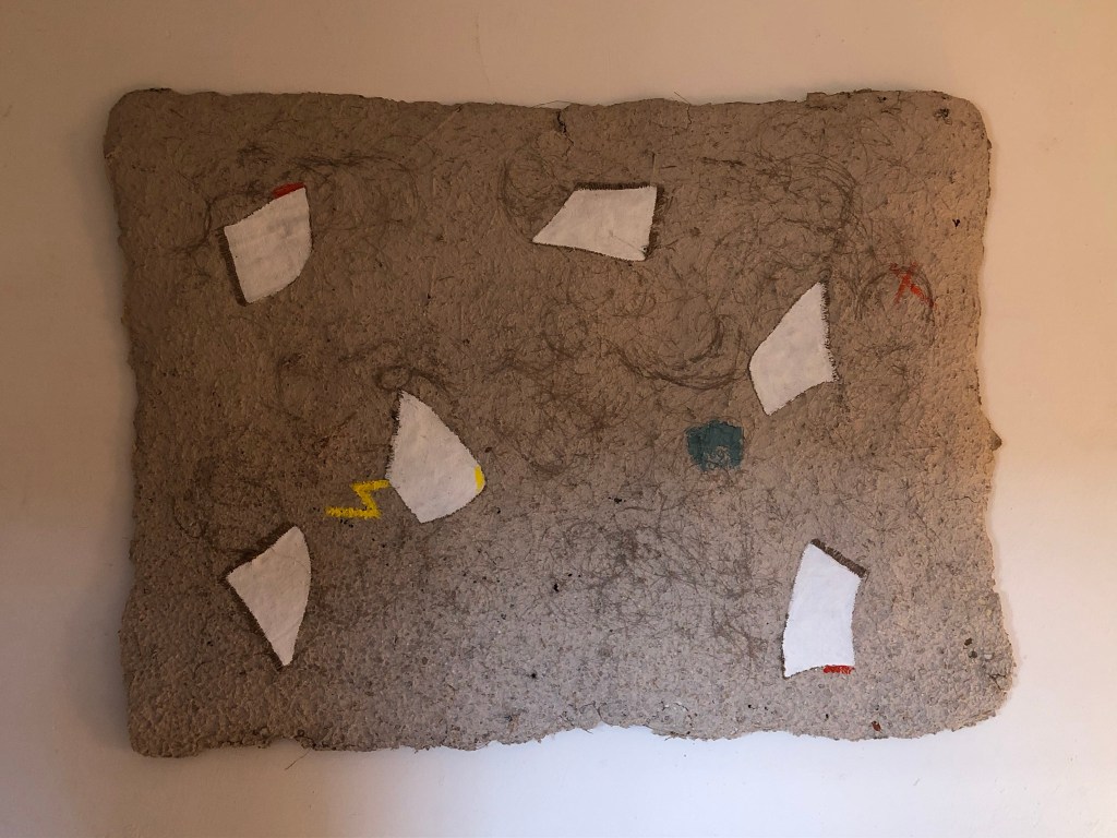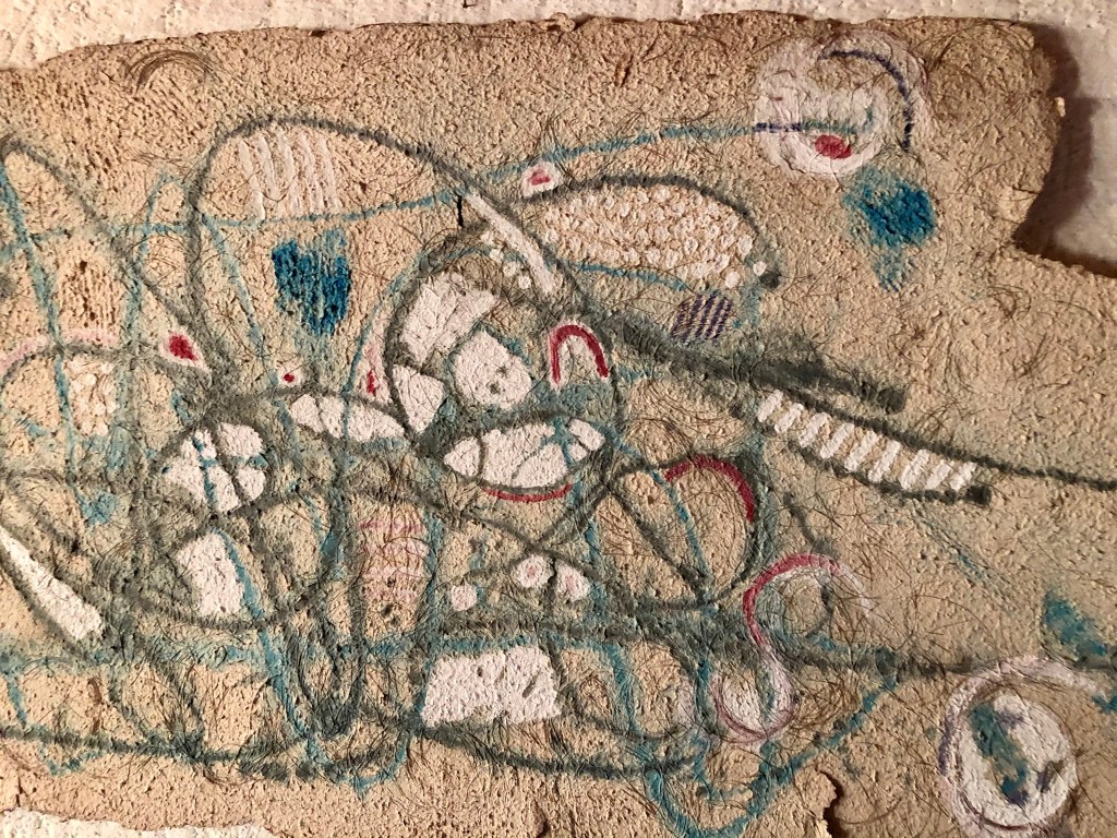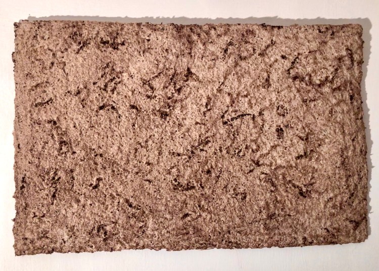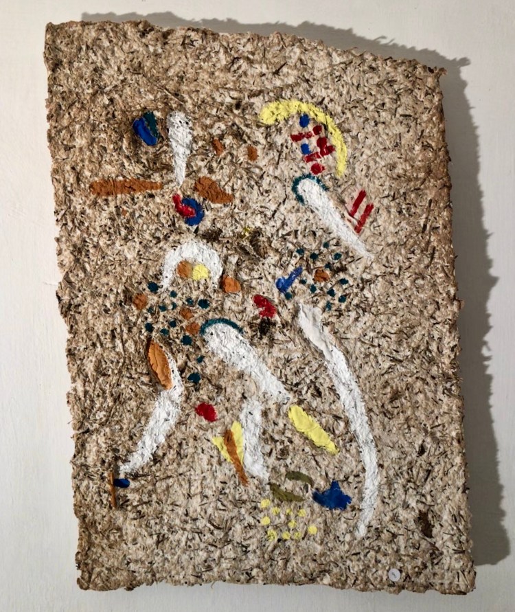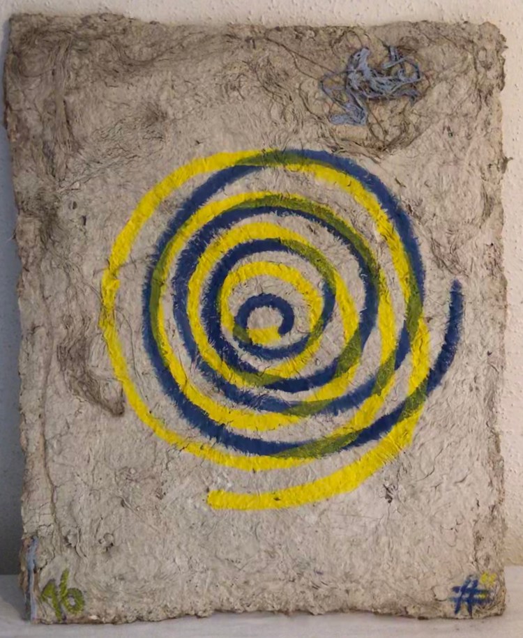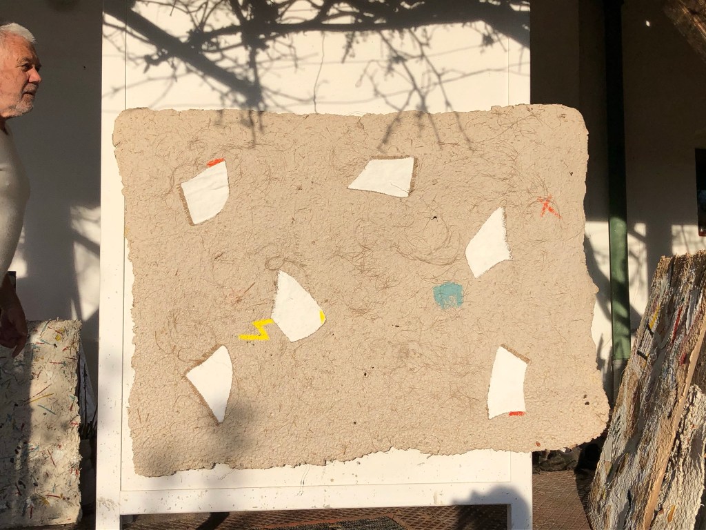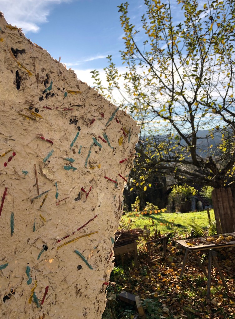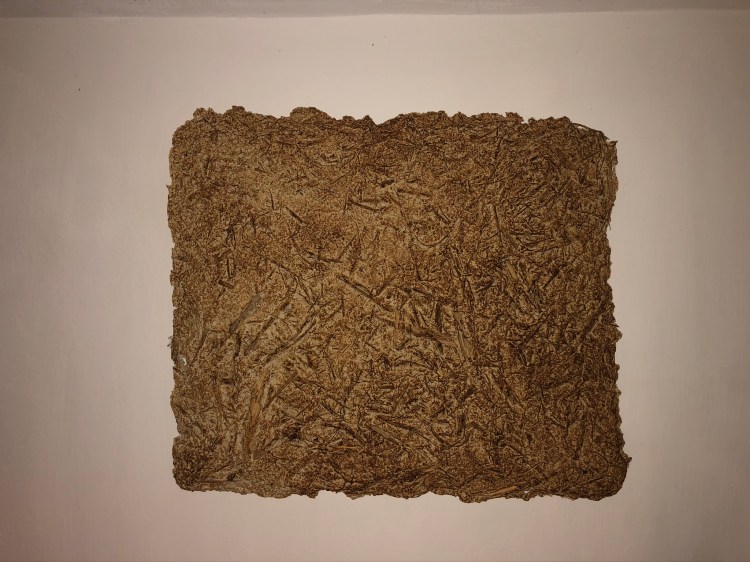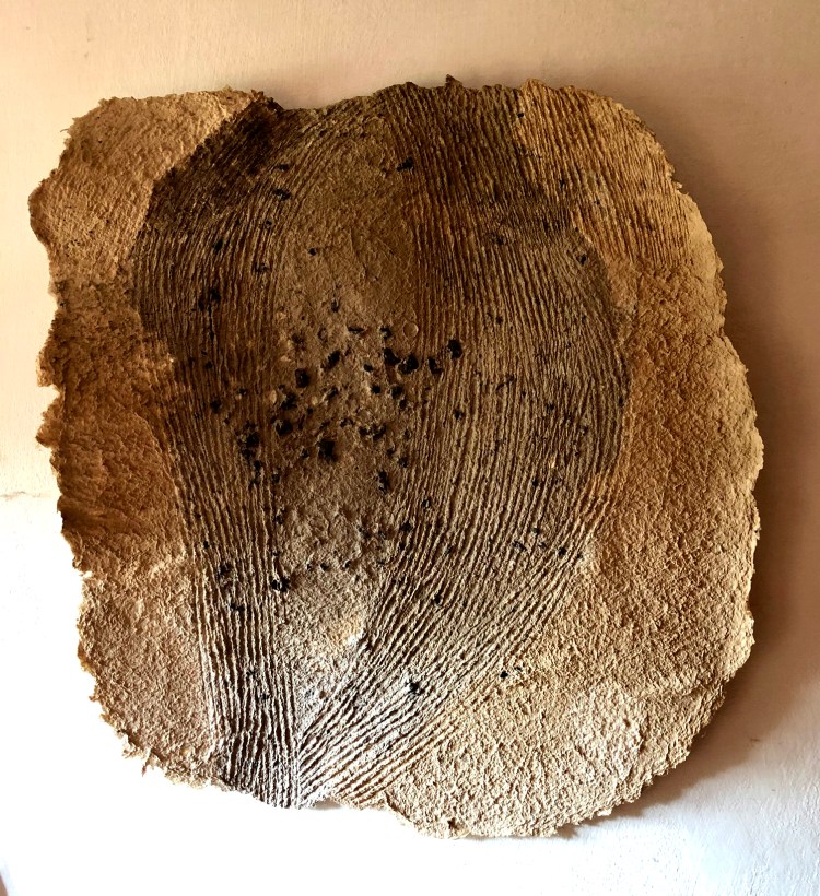 - Die Strukturen des Materials werden dabei formbildend herausgearbeitet und ergeben ein Relief. Entscheidend für diesen Prozess ist das Trocknen der Pulpe an Luft und Sonne. Die Mischung der Materialien sind jahrzehntelange Erfahrungswerte.