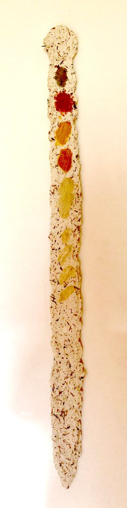 - Form und Material sind eins – will heißen, dass aus der Verwendung spezieller Materialien auch immer unmittelbar die Form des Objektes entsteht. Dazu nutzt Helmut Materialien aus der Natur wie Zellulose, trockene Pflanzenteile, Pflanzenteile zur Farbgewinnung und Pflanzenteile, die dem Objekt letztlich seine Struktur geben, sowie Zusatzstoffen wie Asche, Leim und Tonmehl. Somit holt Helmut das Material aus der Natur in den Kreis der kreativen, sinnlichen Wahrnehmung sowohl optisch als auch haptisch zurück.